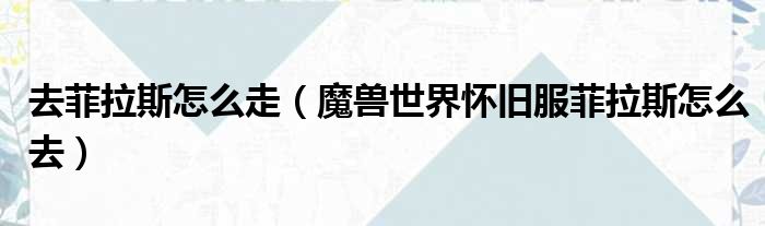 导读 大家好,今天小六子来为大家解答以下的问题,关于去菲拉斯怎么走,魔兽世界怀旧服菲拉斯怎么去这个很多人还不知道,现在让我们一起来看看吧