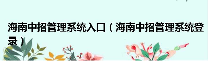 导读 大家好,今天小六子来为大家解答以下的问题,关于海南中招管理系统入口,海南中招管理系统登录这个很多人还不知道,现在让我们一起来看看吧