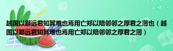 越国以鄙远君知其难也焉用亡郑以陪邻邻之厚君之薄也(越国以鄙远君知其难也焉用亡郑以陪邻邻之厚君之薄)