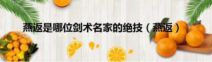 燕返是哪位剑术名家的绝技(燕返)