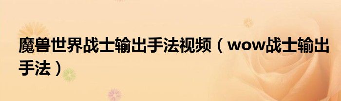 导读 大家好,今天小六子来为大家解答以下的问题,关于魔兽世界战士输出手法视频,wow战士输出手法这个很多人还不知道,现在让我们一起来看看吧!