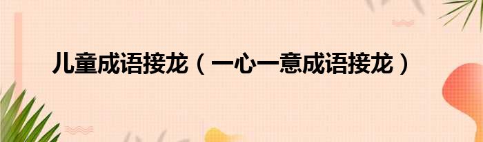 导读 大家好,今天小六子来为大家解答以下的问题,关于儿童成语接龙,一心一意成语接龙这个很多人还不知道,现在让我们一起来看看吧!1、一心一意