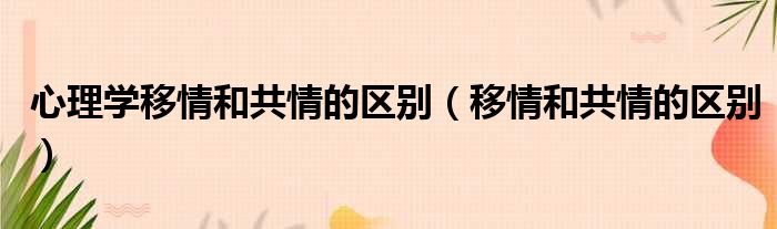 导读 大家好,今天小六子来为大家解答以下的问题,关于心理学移情和共情的区别,移情和共情的区别这个很多人还不知道,现在让我们一起来看看吧!1