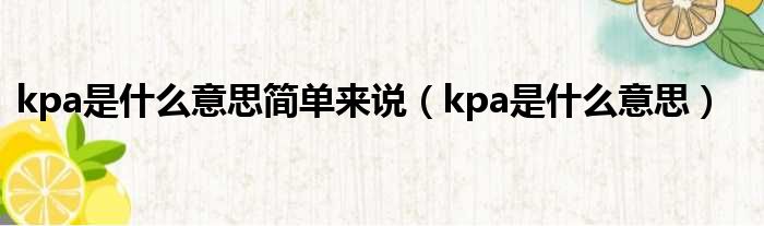 kpa是什么意思简单来说(kpa是什么意思)