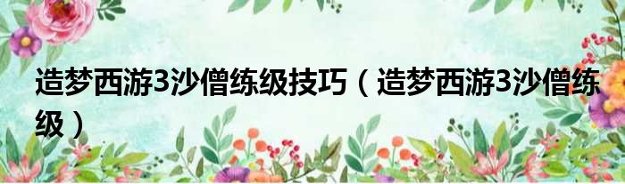 造梦西游3沙僧练级技巧(造梦西游3沙僧练级)