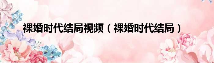 导读 大家好,今天小六子来为大家解答以下的问题,关于裸婚时代结局视频,裸婚时代结局这个很多人还不知道,现在让我们一起来看看吧!1、《裸婚时