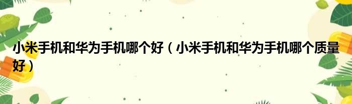 小米手机和华为手机哪个好(小米手机和华为手机哪个质量好)