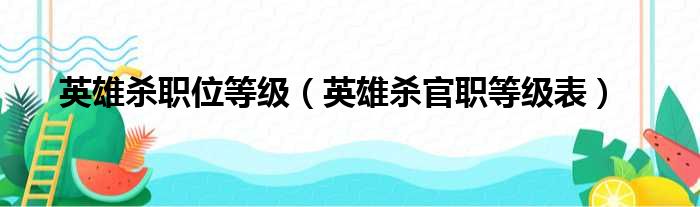 大家好,今天小六子来为大家解答以下的问题,关于英雄杀职位等级,英雄杀官职等级表这个很多人还不知道,现在让我们一起来看看吧!