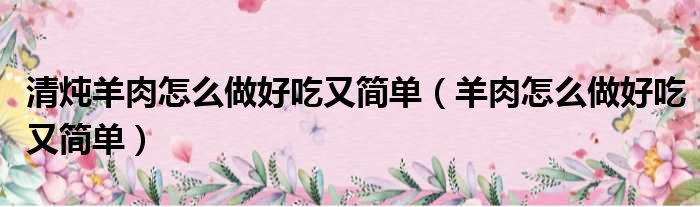 清炖羊肉怎么做好吃又简单(羊肉怎么做好吃又简单)