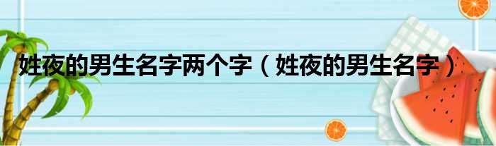 姓夜的男生名字两个字(姓夜的男生名字)