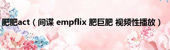 导读 大家好,今天小六子来为大家解答以下的问题,关于肥肥act,间谍 empflix 肥巨肥 视频性播放这个很多人还不知道,现在让我们一起来看看吧