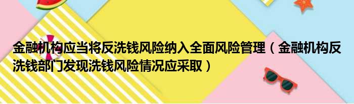 大家好,今天小六子来为大家解答以下的问题,关于金融机构应当将反洗钱风险纳入全面风险管理,金融机构反洗钱部门发现洗钱风险情况应采取这个很多人还不知道,现在让我们一起来看看吧!