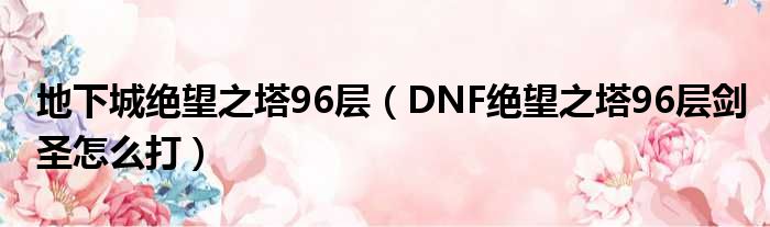 地下城绝望之塔96层(DNF绝望之塔96层剑圣怎么打)