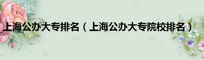 导读 大家好,今天小六子来为大家解答以下的问题,关于上海公办大专排名,上海公办大专院校排名这个很多人还不知道,现在让我们一起来看看吧!1、