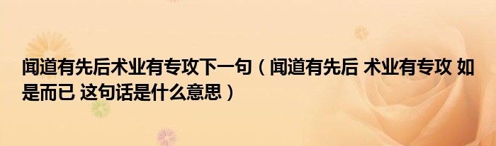 闻道有先后术业有专攻下一句(闻道有先后 术业有专攻 如是而已 这句话是什么意思)
