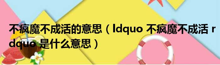 导读 大家好,今天小六子来为大家解答以下的问题,关于不疯魔不成活的意思,ldquo 不疯魔不成活 rdquo 是什么意思这个很多人还不知道,现在让