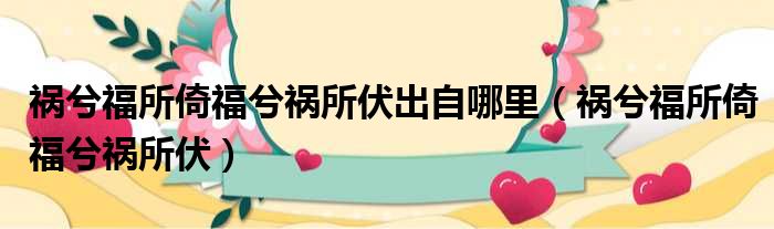 祸兮福所倚福兮祸所伏出自哪里(祸兮福所倚福兮祸所伏)