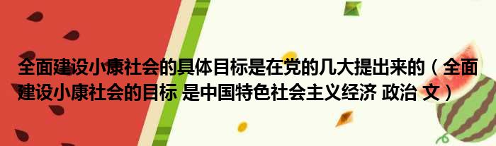 全面建设小康社会的具体目标是在党的几大提出来的(全面建设小康社会的目标 是中国特色社会主义经济 政治 文)