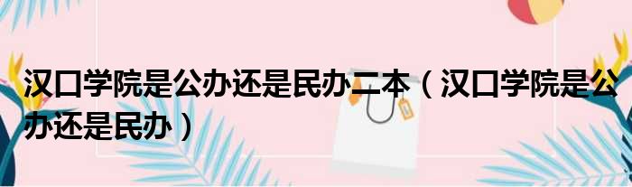导读 大家好,今天小六子来为大家解答以下的问题,关于汉口学院是公办还是民办二本,汉口学院是公办还是民办这个很多人还不知道,现在让我们一起