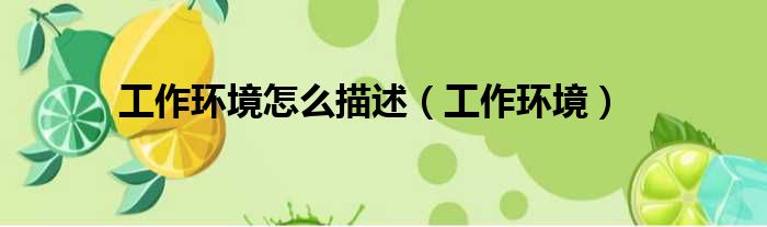 导读 大家好,今天小六子来为大家解答以下的问题,关于工作环境怎么描述,工作环境这个很多人还不知道,现在让我们一起来看看吧!1、在公司工作了