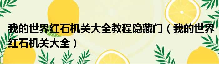 我的世界红石机关大全教程隐藏门(我的世界红石机关大全)
