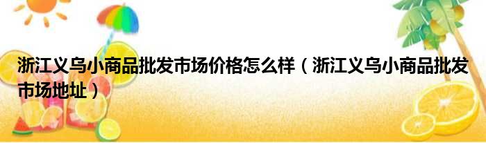 浙江义乌小商品批发市场价格怎么样(浙江义乌小商品批发市场地址)