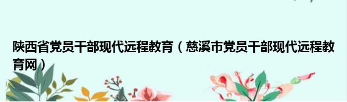 陕西省党员干部现代远程教育(慈溪市党员干部现代远程教育网)