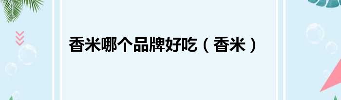 香米哪个品牌好吃(香米)