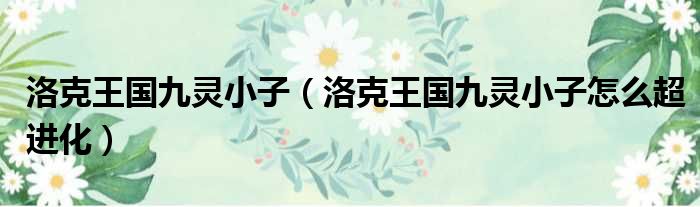 洛克王国九灵小子(洛克王国九灵小子怎么超进化)