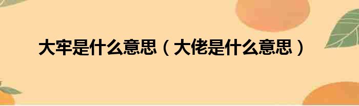 大家好,今天小六子来为大家解答以下的问题,关于大牢是什么意思,大佬是什么意思这个很多人还不知道,现在让我们一起来看看吧!
