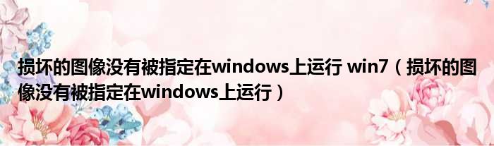 损坏的图像没有被指定在windows上运行 win7(损坏的图像没有被指定在windows上运行)