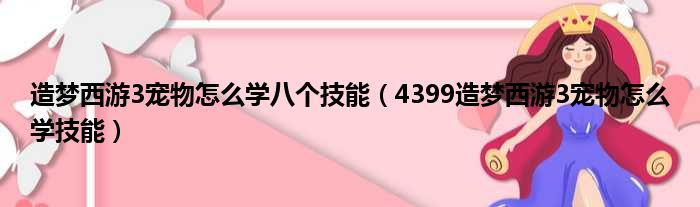 造梦西游3宠物怎么学八个技能(4399造梦西游3宠物怎么学技能)