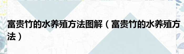富贵竹的水养殖方法图解(富贵竹的水养殖方法)