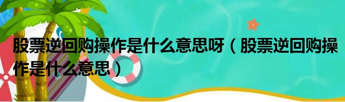 股票逆回购操作是什么意思呀(股票逆回购操作是什么意思)
