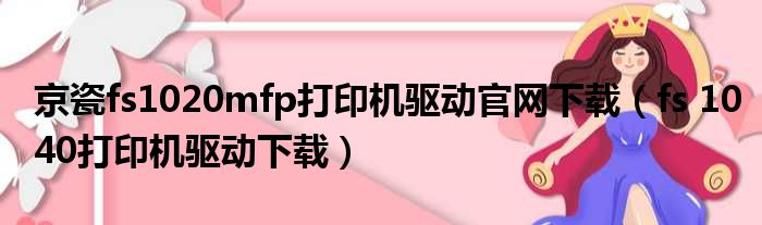 导读 大家好,今天小六子来为大家解答以下的问题,关于京瓷fs1020mfp打印机驱动官网下载,fs 1040打印机驱动下载这个很多人还不知道,现在让我们