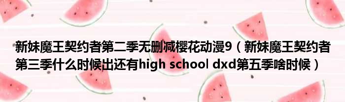新妹魔王契约者第二季无删减樱花动漫9(新妹魔王契约者第三季什么时候出还有high school dxd第五季啥时候)