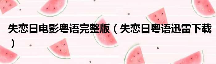失恋日电影粤语完整版(失恋日粤语迅雷下载)