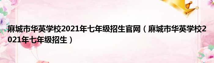 麻城市华英学校2021年七年级招生官网(麻城市华英学校2021年七年级招生)