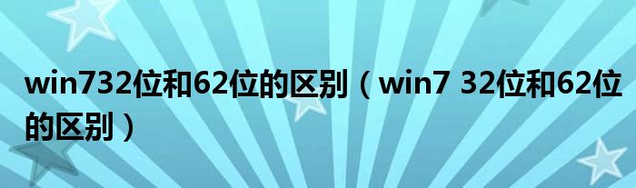 导读 大家好,今天小六子来为大家解答以下的问题,关于win732位和62位的区别,win7 32位和62位的区别这个很多人还不知道,现在让我们一起来看看