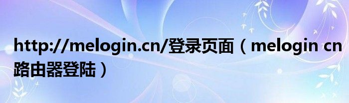 http://melogin.cn/登录页面(melogin cn路由器登陆)