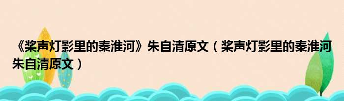 《桨声灯影里的秦淮河》朱自清原文(桨声灯影里的秦淮河朱自清原文)