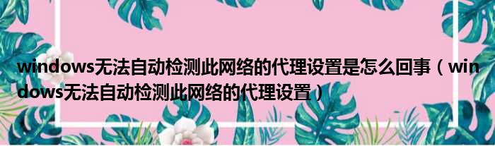windows无法自动检测此网络的代理设置是怎么回事(windows无法自动检测此网络的代理设置)