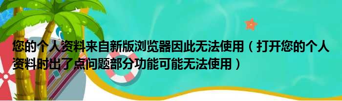 导读 大家好,今天小六子来为大家解答以下的问题,关于您的个人资料来自新版浏览器因此无法使用,打开您的个人资料时出了点问题部分功能可能无法