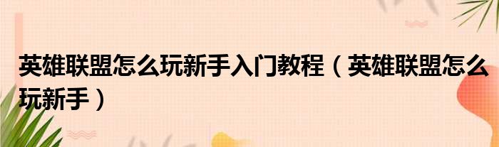 英雄联盟怎么玩新手入门教程(英雄联盟怎么玩新手)