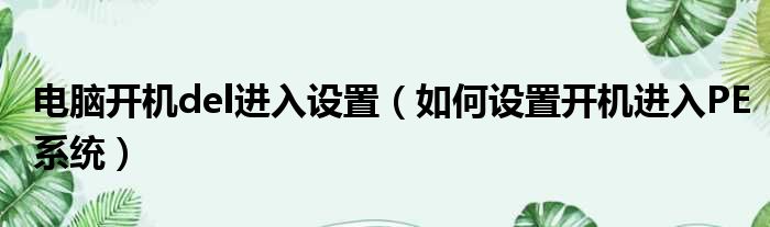 导读 大家好,今天小六子来为大家解答以下的问题,关于电脑开机del进入设置,如何设置开机进入PE系统这个很多人还不知道,现在让我们一起来看看吧