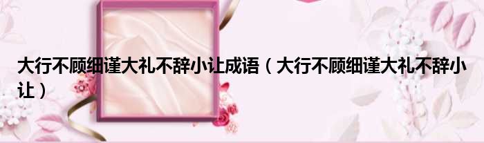 导读 大家好,今天小六子来为大家解答以下的问题,关于大行不顾细谨大礼不辞小让成语,大行不顾细谨大礼不辞小让这个很多人还不知道,现在让我们