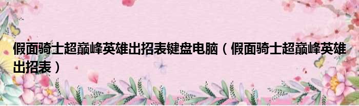 导读 大家好,今天小六子来为大家解答以下的问题,关于假面骑士超巅峰英雄出招表键盘电脑,假面骑士超巅峰英雄出招表这个很多人还不知道,现在让