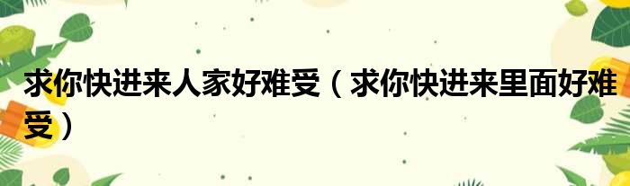 导读 大家好,今天小六子来为大家解答以下的问题,关于求你快进来人家好难受,求你快进来里面好难受这个很多人还不知道,现在让我们一起来看看吧