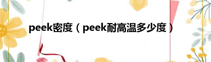 导读 大家好,今天小六子来为大家解答以下的问题,关于peek密度,peek耐高温多少度这个很多人还不知道,现在让我们一起来看看吧!1、它属耐高温热