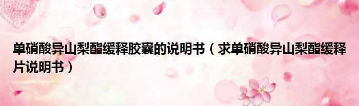 单硝酸异山梨酯缓释胶囊的说明书(求单硝酸异山梨酯缓释片说明书)